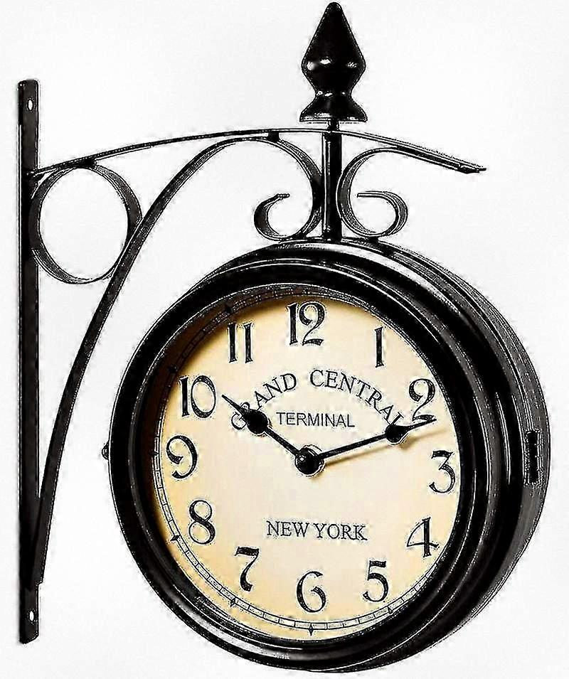 Vintage Style Two-Faced Iron Wall Clock Inspired by New York Landmark