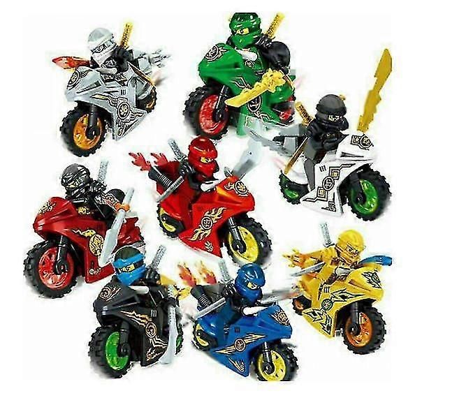 Ninjago Motorcycle Set Ninja Mini Figures Blocks Toys 8pcsNinjago Mini FiguresDescription 100% Brand new and high quality. This product can be used as the best toy gift for kids boys and girls. These figures come with no instruction, easy and fun to assemble. Compatible with LE*GO and all major leading bricks and blocks. These are custom mini figures.Material: ABS Plastic (Non-toxic)Size: Approx 4.5cm(1.8inch)Brand: UnbrandedPackage Content: 8Pcs Ninjago Mini Figures Set (Characters and motorcycles)