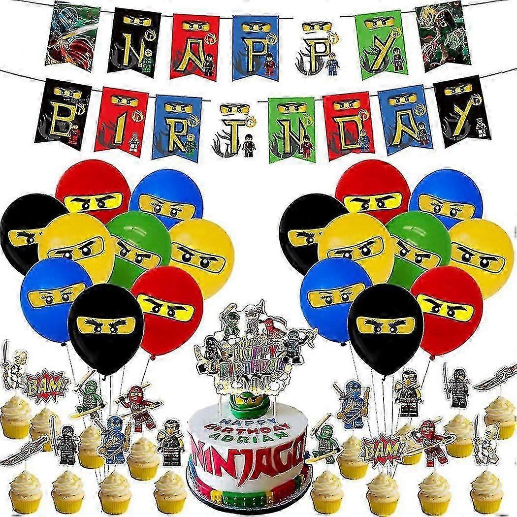 Ninjago Party Pull Flag Banners Balloons Cake Toppers Decoration