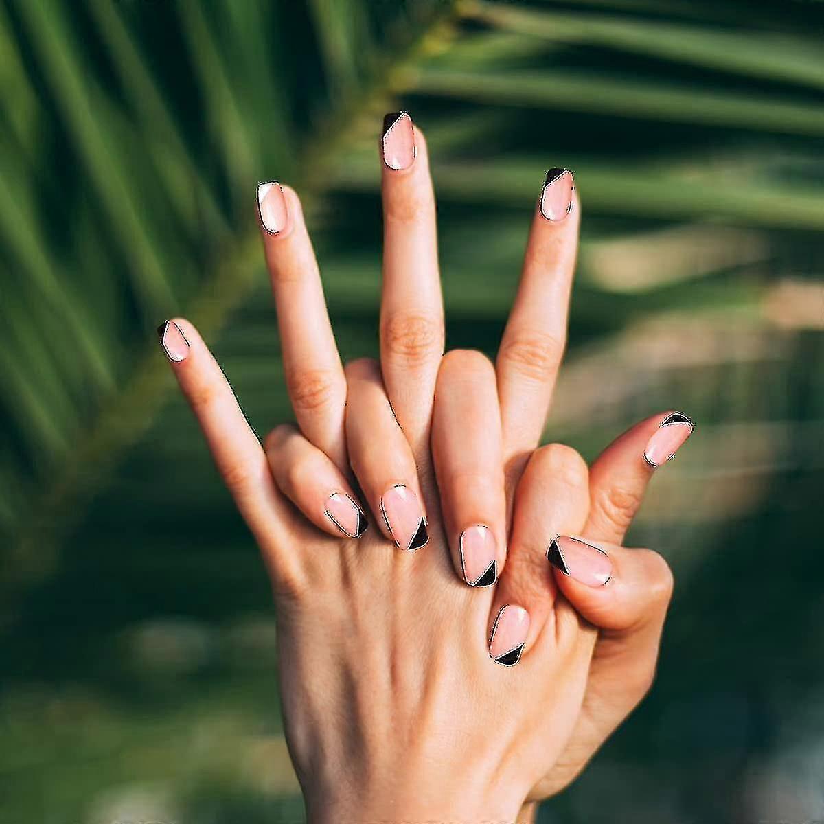 Nude Square French Press On Nails Short,black White Acrylic Nails Press On