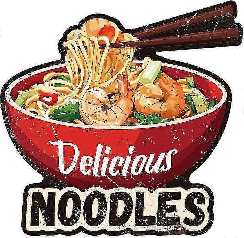 Noodle Food Metal Tin Sign Funny Food Home Kitchen Wall Decor Poster Retro Shrimp Noodle Poster Hanging Wall Signs Decoration for Restaurant Cafe Bars