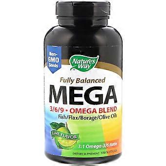 ネイチャーズウェイ、完全にバランスの取れたメガ3/6/9、オメガブレンド、ライムフレーバー、180ソフトジェル
