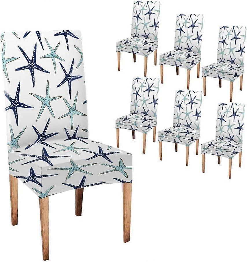 Navy and White Dining Room Chair Slip Covers 6 Pack Coastal Nautical Repeat Pattern Navy Blue and Turquoise Sea Stars on a Parson Chair Slipcover Remo