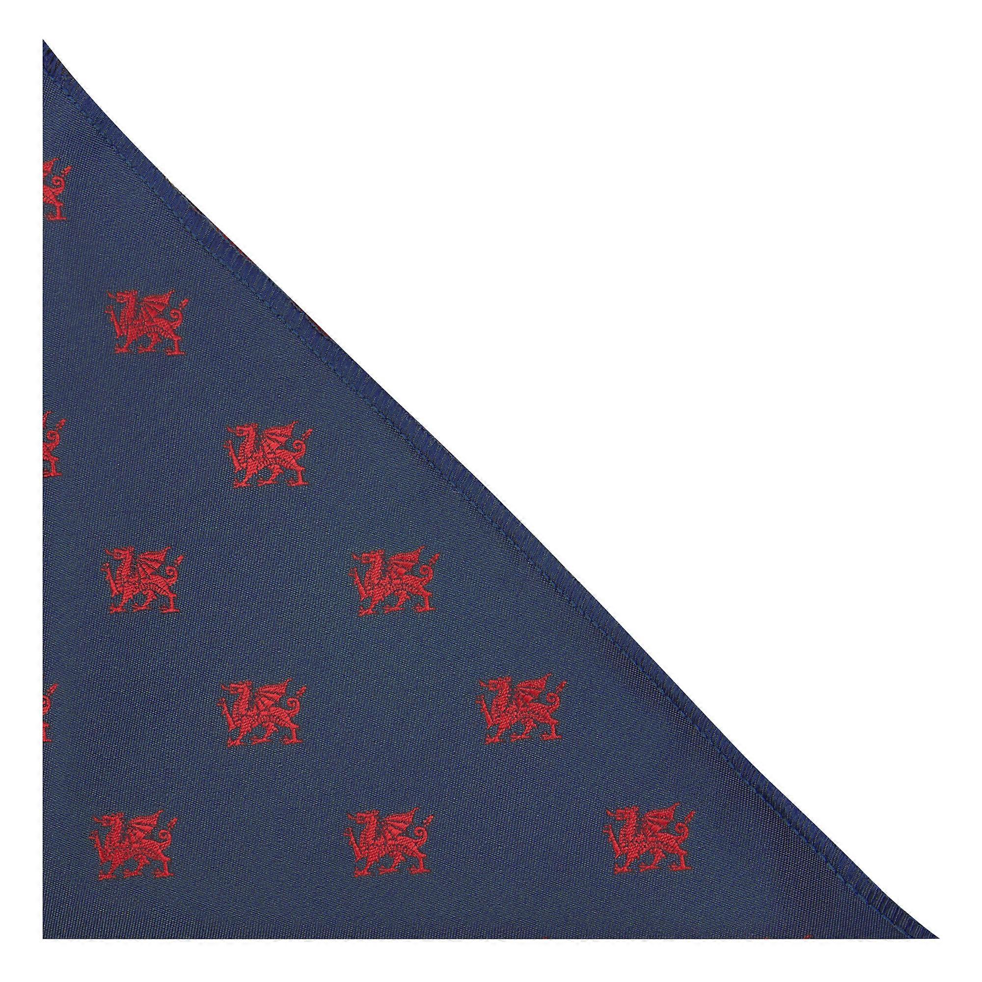 Navy Blue Welsh Dragon Embroidered Pocket Square