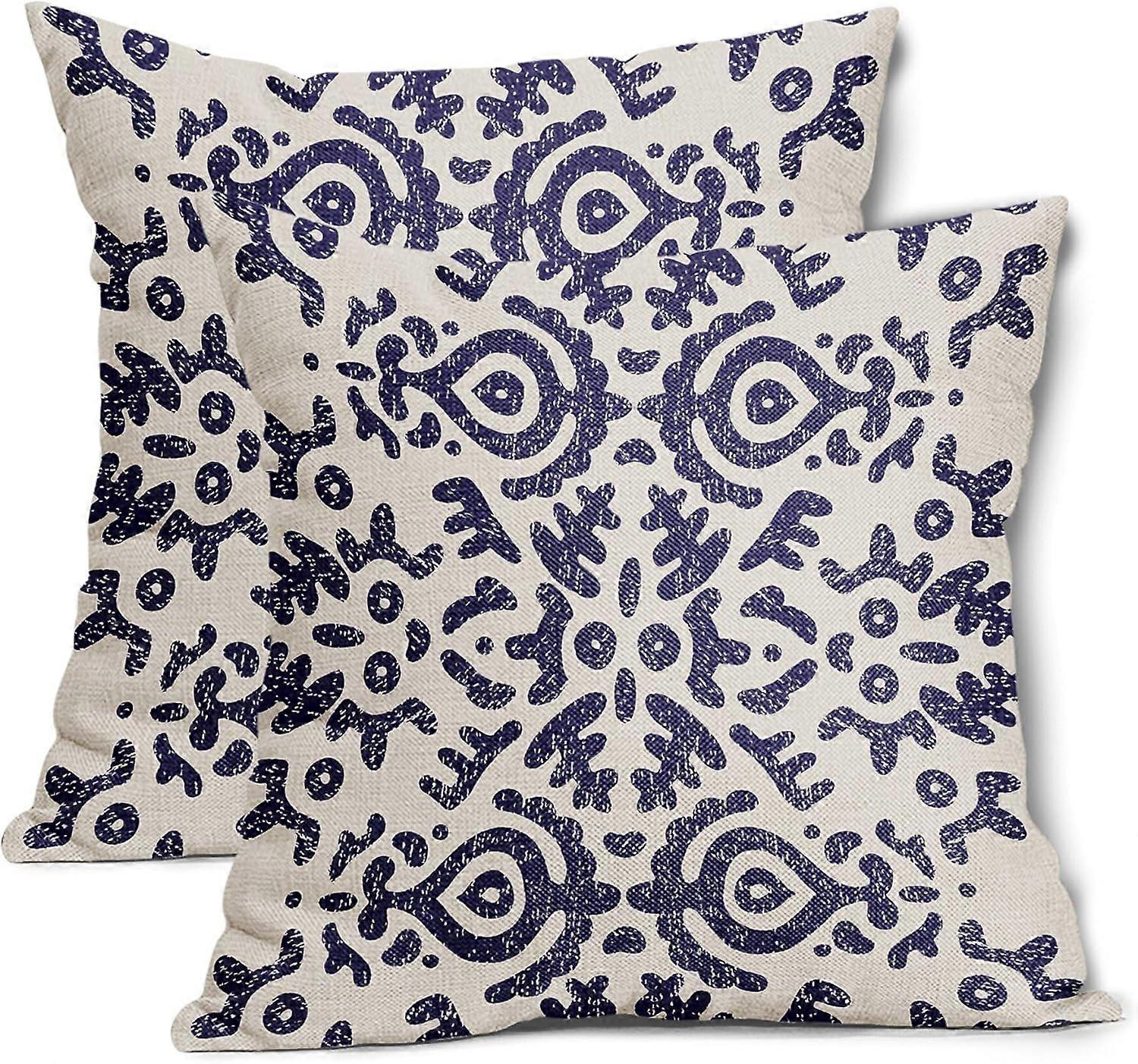 Navy Blue Ethnic Geometric Pillow Covers 16X16 Inch Bohemian Western Tribal Aztec Couch Pillow Cases Boho Ikat Vintage Square Throw Pillows Set of 2 F