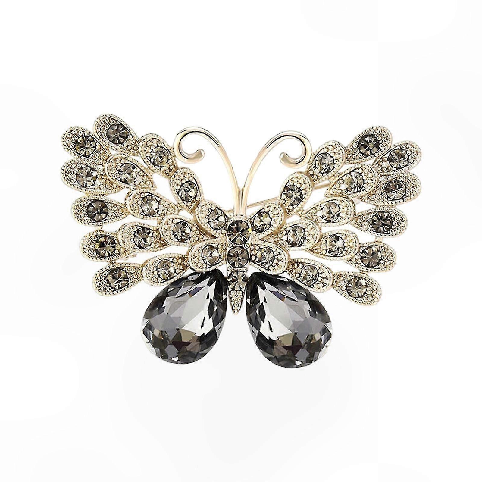Navy Blue Crystal Butterfly Brooch for Evening Wear & Social Events