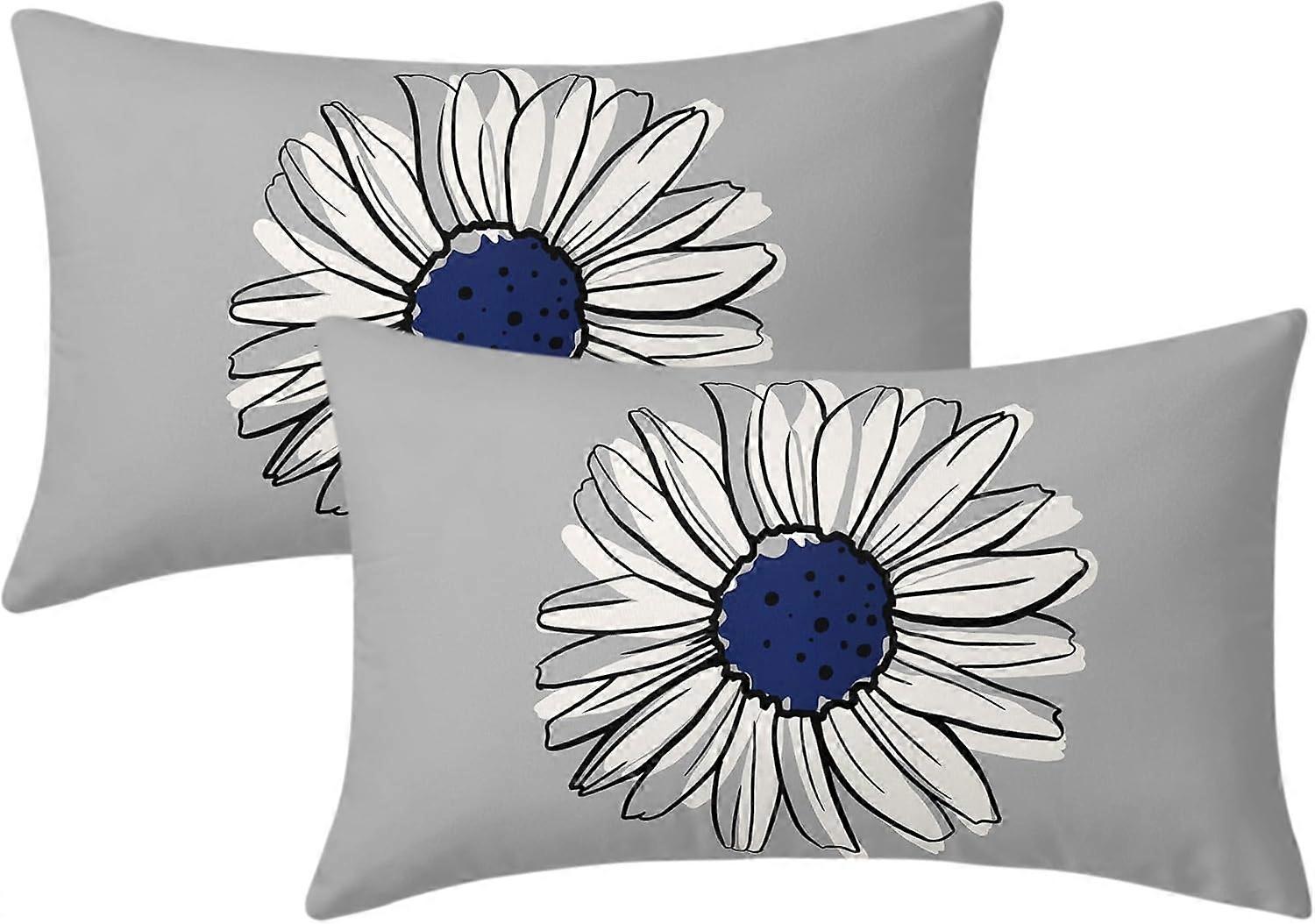 Navy Blue Daisy Pillow Covers 12X20 Inch Spring Summer Floral Lumber Pillow Cases Modern Abstract Flower Rectangular Throw Pillows Set of 2 Home Decor