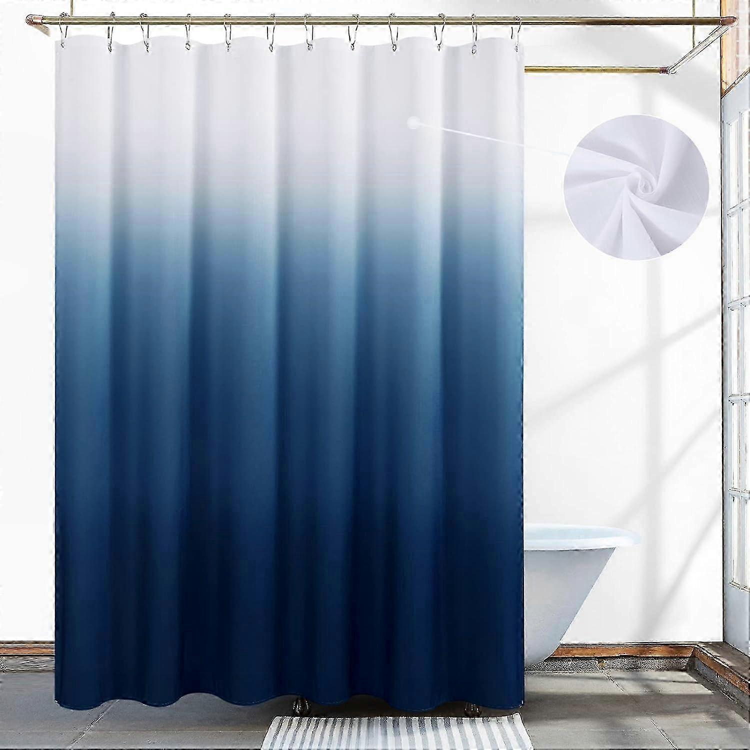 Navy Blue Linen Textured Shower Curtain Set for Bathroom, Washable Fabric Bath Curtain with Masculine Design