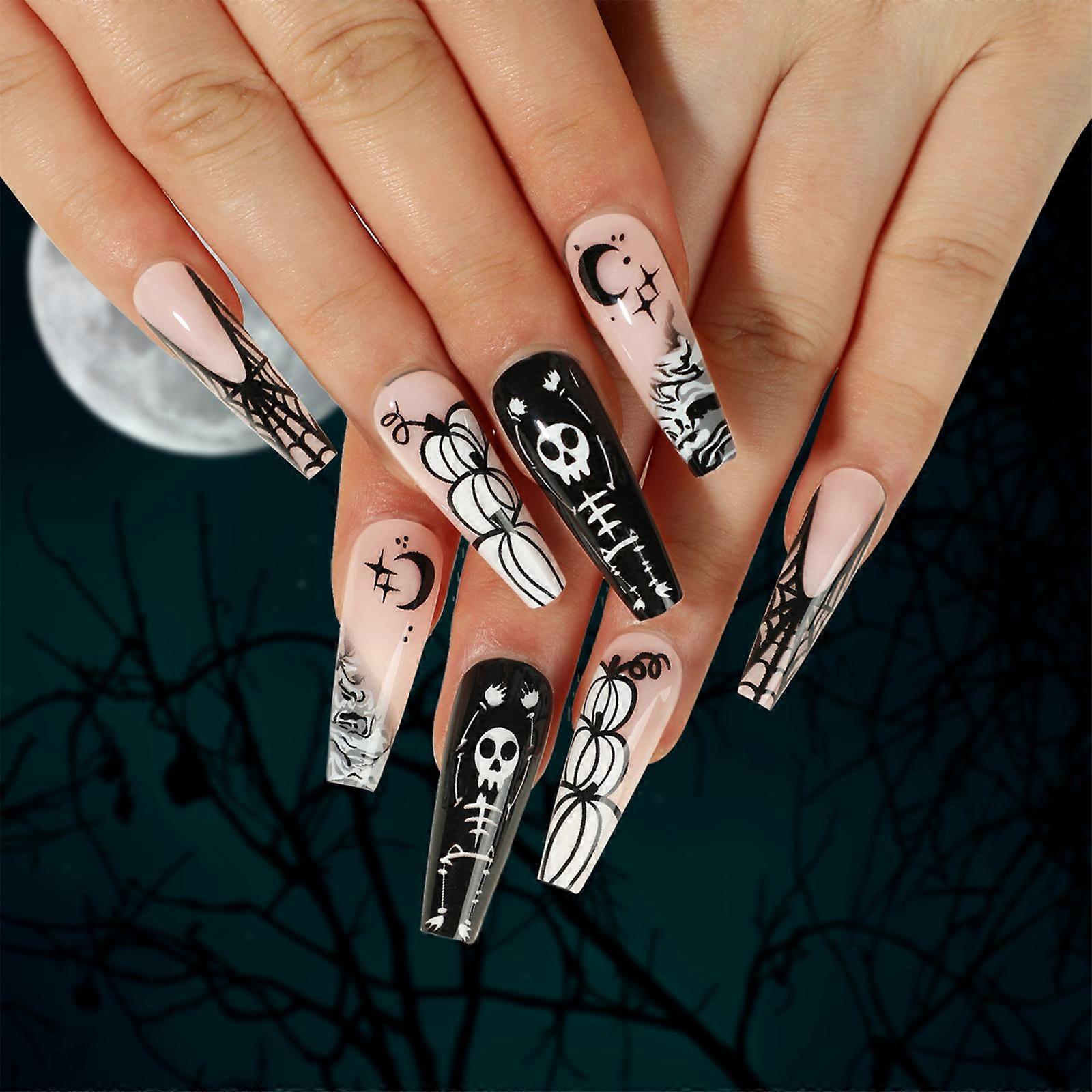 1 Sheet Coffin Press on Nails French Fake Nails Tips Full Cover Acrylic Nails Glossy Horrible Halloween False Nails
