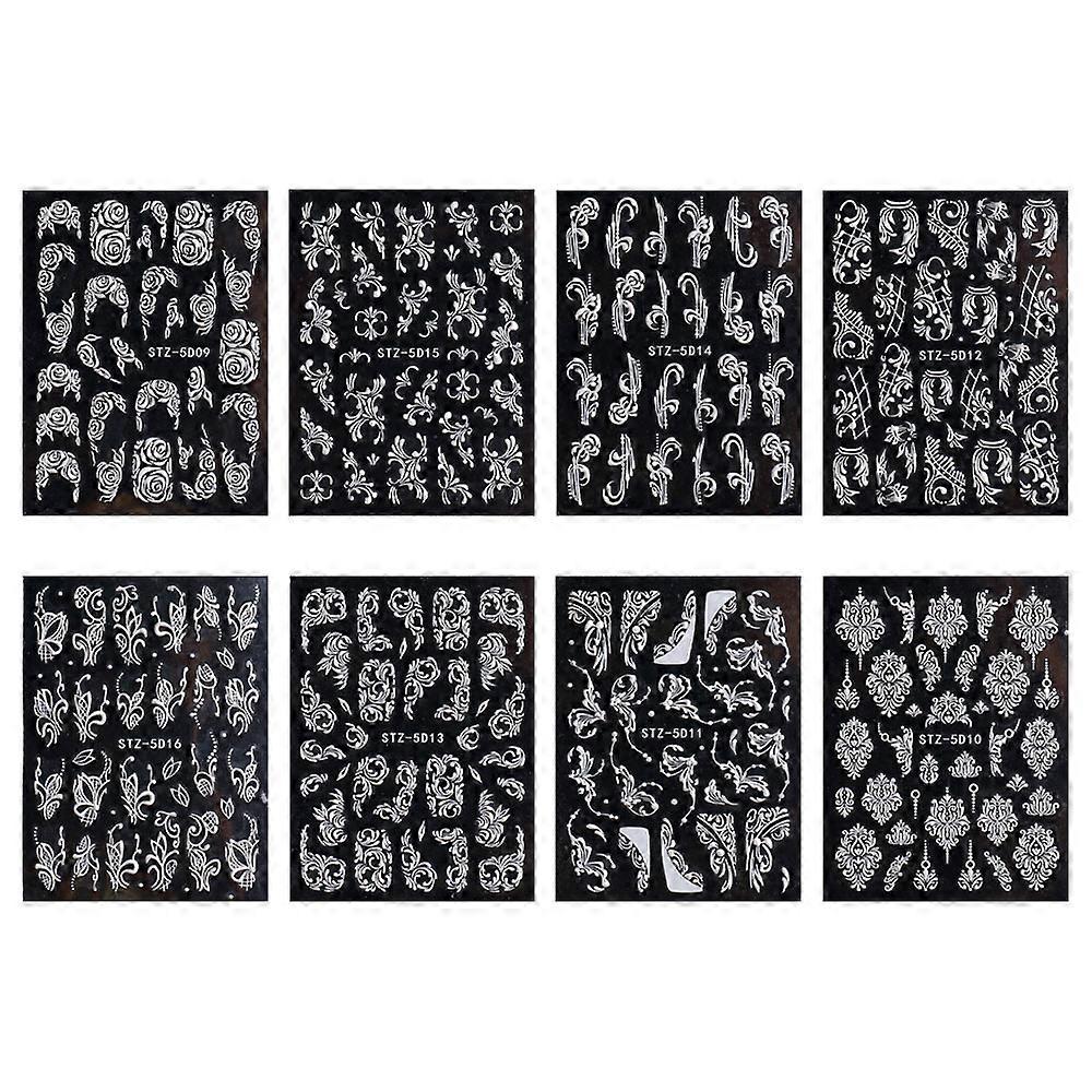 Nail Art Sticker Decals 5D Embossed Nail Art Accessories Self-Adhesive Nail Art Supplies Decoration, 8 Sheets, 7.8*6cm.