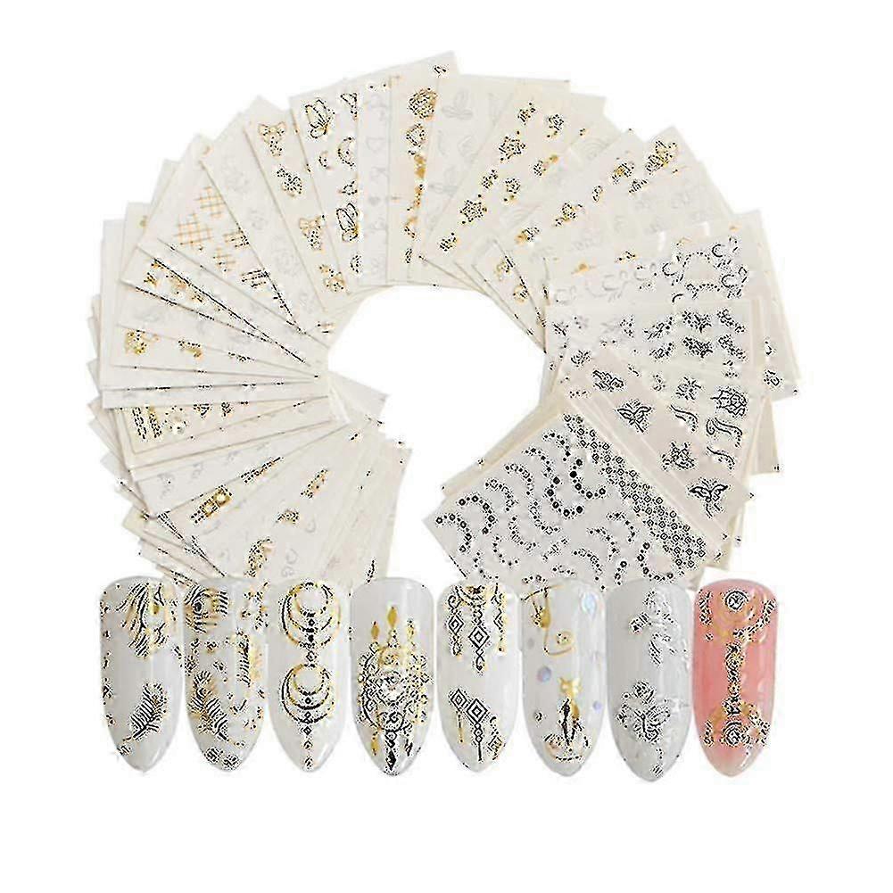 Nail Art Stickers 30 Sheets Art Nail Stickers Self Adhesive Gold Silver Water Transfers With Nail Art Stud Nail Metal Sequins A