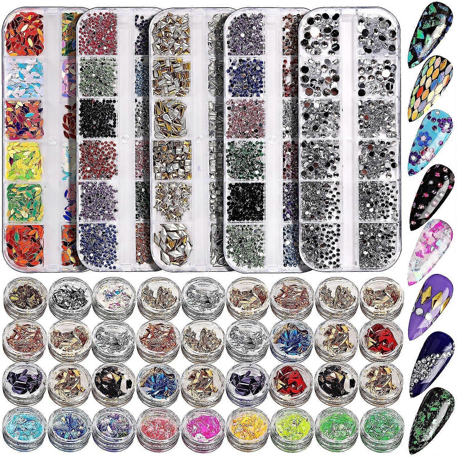 Nail Art Decoration Stones: This extensive collection of nail rhinestones and gems offers a fantastic selection of shapes, colors, and sizes. All the rhinestones are sparkly, beautiful, and dazzling, with trendy and cute shapes. The box offers enough variety to create all sorts of designs. Nail Art Glitter Sequins: Available in 22 different colors with beautiful foil options. Comes in 36 small, clear containers to prevent spills and ensure easy application. Wide Range of Uses: Nail art can be applied not only to natural or artificial nails but also to resin crafts, etc. Tips: Nail stickers require nail glue for attachment. You can adhere foil to wet topcoat and then apply a sealing layer.