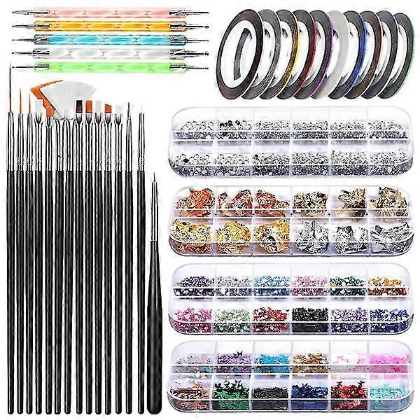 Nail Art Brush, Teenitor 3d Nail Art Decorations Kit With Nail Pen Designer Dotting Tool Colors