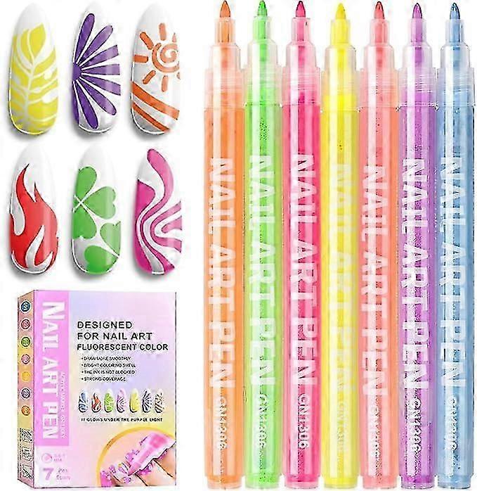 Nail Art Pens, Nail Polish Pen 3D Nail Art Tools for Nail Varnish Pens, 7 Fluorescent Colors Drawing Painting Point Pen, Nail Varnish Pens for Nails A
