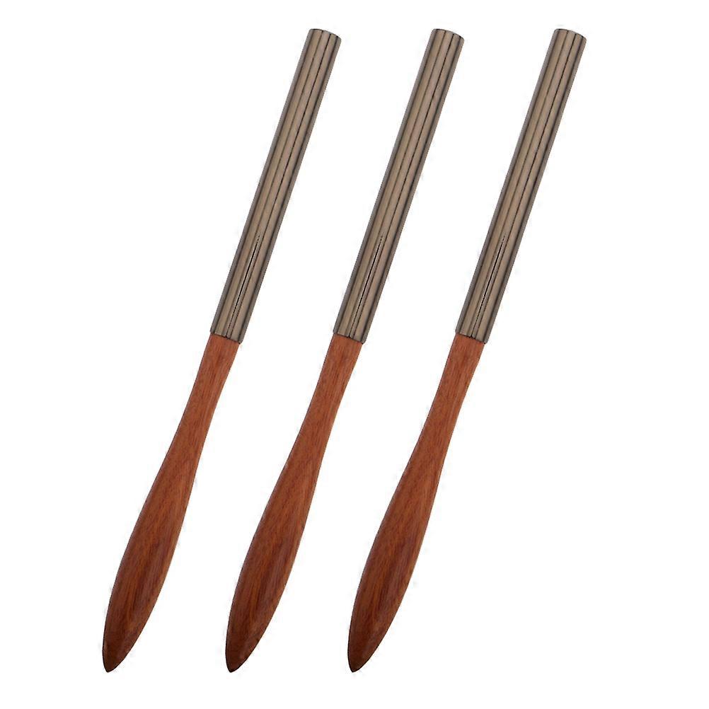 Nail Art Polish Pen Multi-Functional Manicure Tool For Women Ergonomic Wooden Handle Flat Head Design 3Pcs