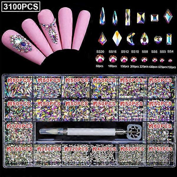 Nail Art Rhinestones Kit Multi Shapes Glass Crystal AB Nail Stones Nail Jewels Flatback Gemstones