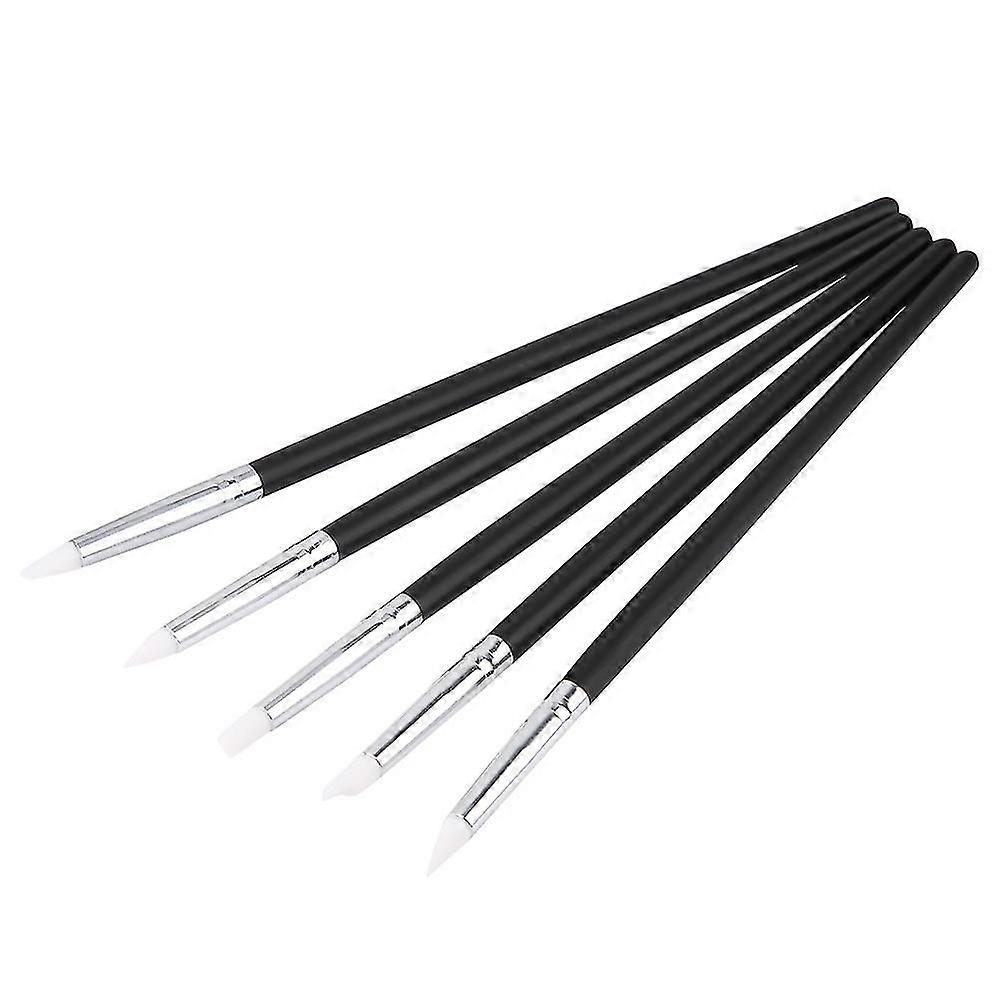 Nail Art Sculpture Silicone Pen Kit - 5 PCS, Wooden Painting, 3D Effect, Cleaning Brush