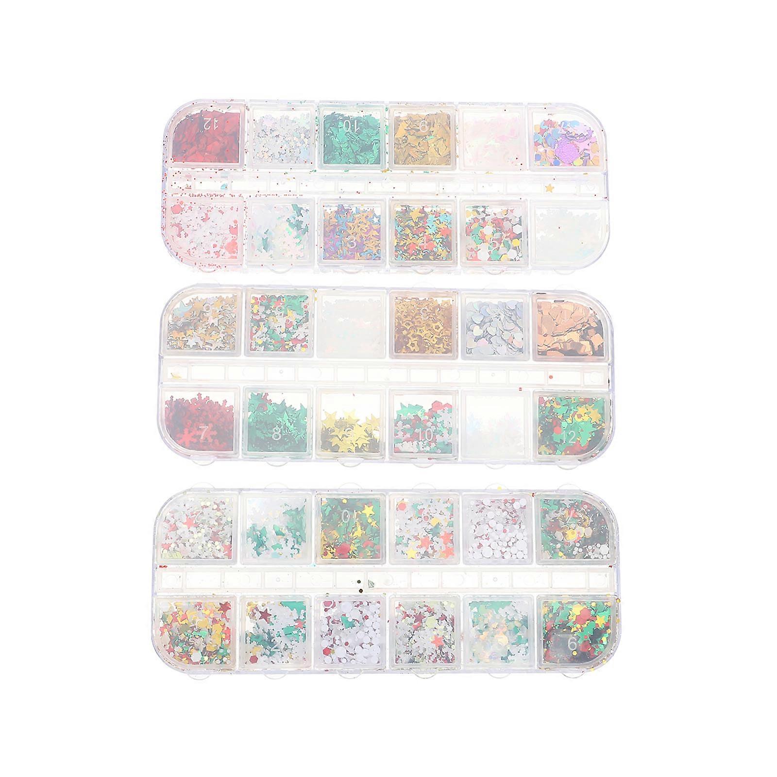 Christmas Nail Confetti for Nail Art 3 Boxes Glitter Sequins Set