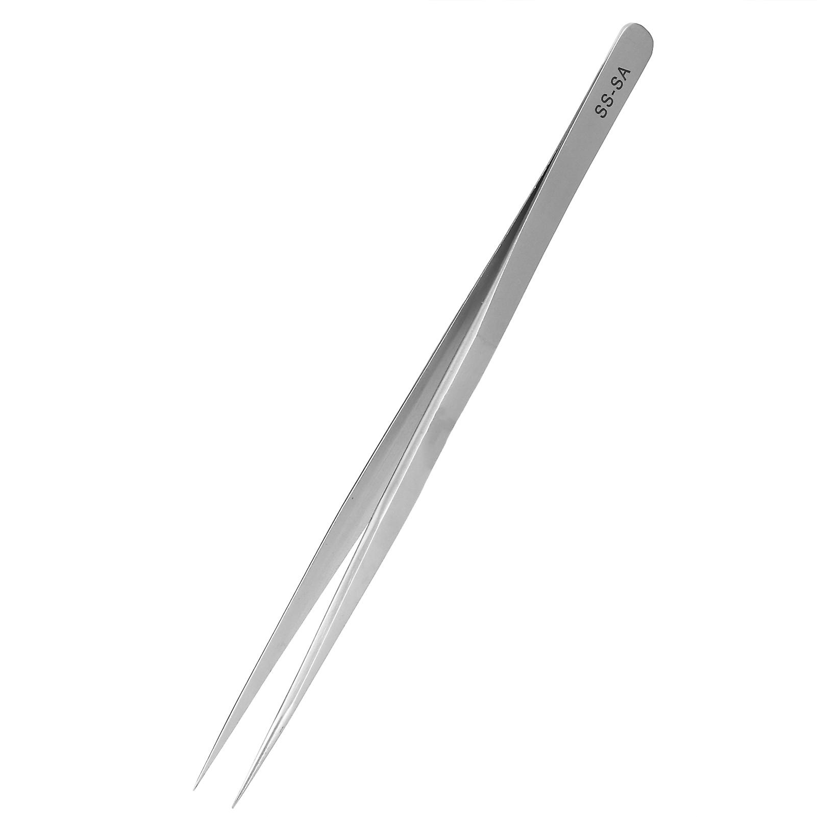 Stainless Steel Eyelash Extension Tweezers Straight Pointed Tweezer for Nail Art (SSSAThin handle tweezers)