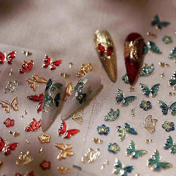 2 Sheets 5D Embossed Butterfly Nail Stickers for Nail Art | Red and Green Bronzed Butterfly Nail Art Stickers | Cat Eye