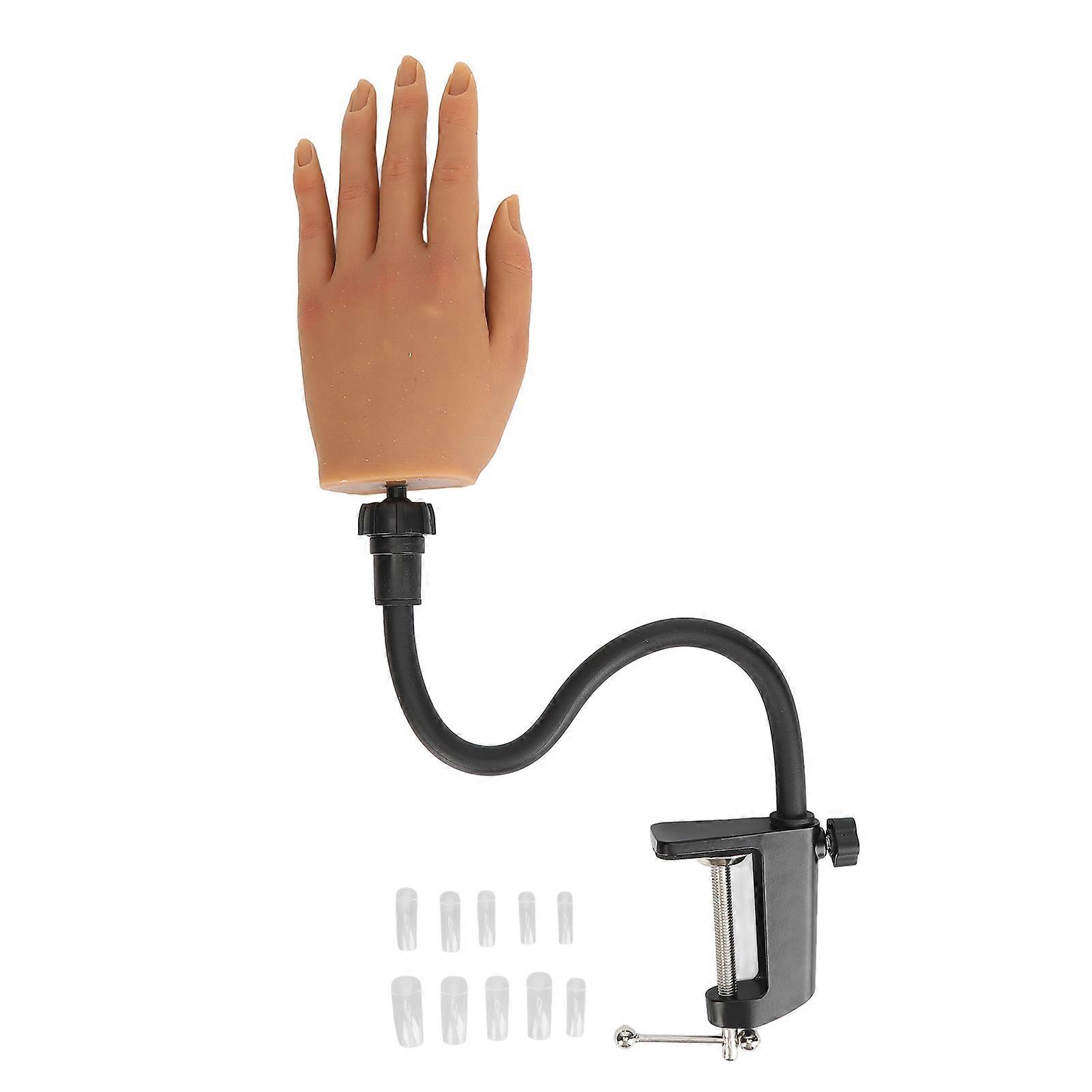 Nail Art Practice Hand Bendable Joints Nail Tips Silicone Nail Training Hand with Desktop Clip for Beginners Left Hand