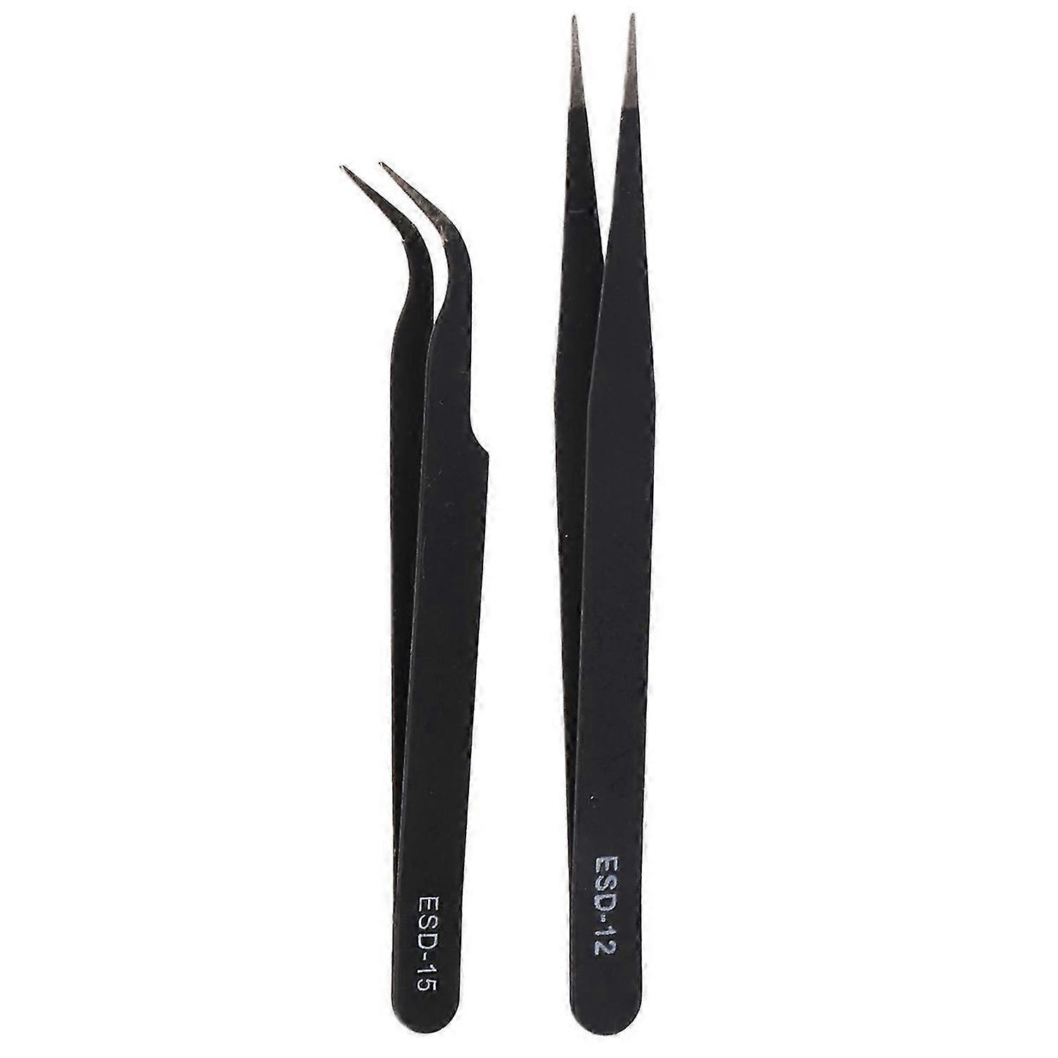 Nail Art Rhinestones Eyelashes Extension Straight & Curved Tweezers Tool Set-Black