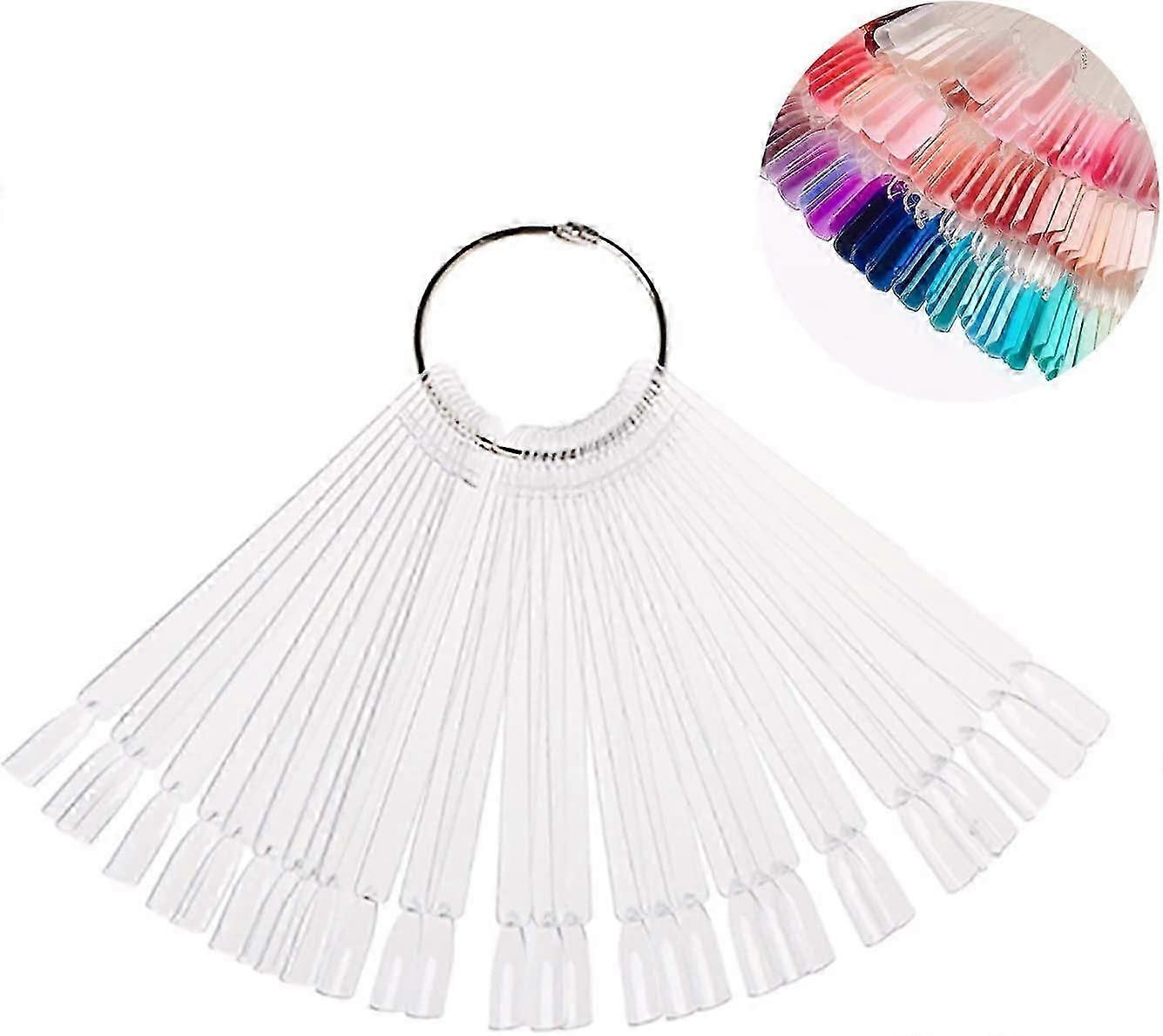 Nail Color Sticks, Nail Art Tips Sample Sticks With Metal Split Ring, Nail Polish Colour Display Nail Practice Display Fan Shape Card Set (Transparent