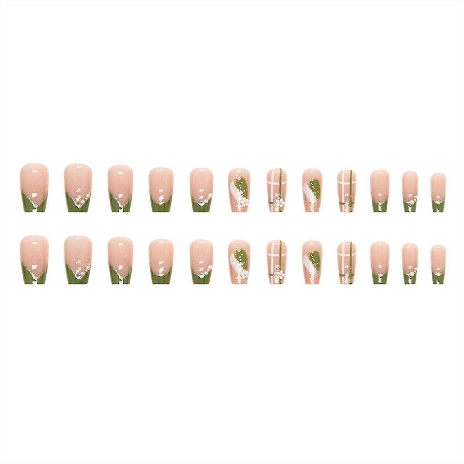 French Glue On Nails Kit Sweet Green Full Cover Short Stick On Nails Glue Models