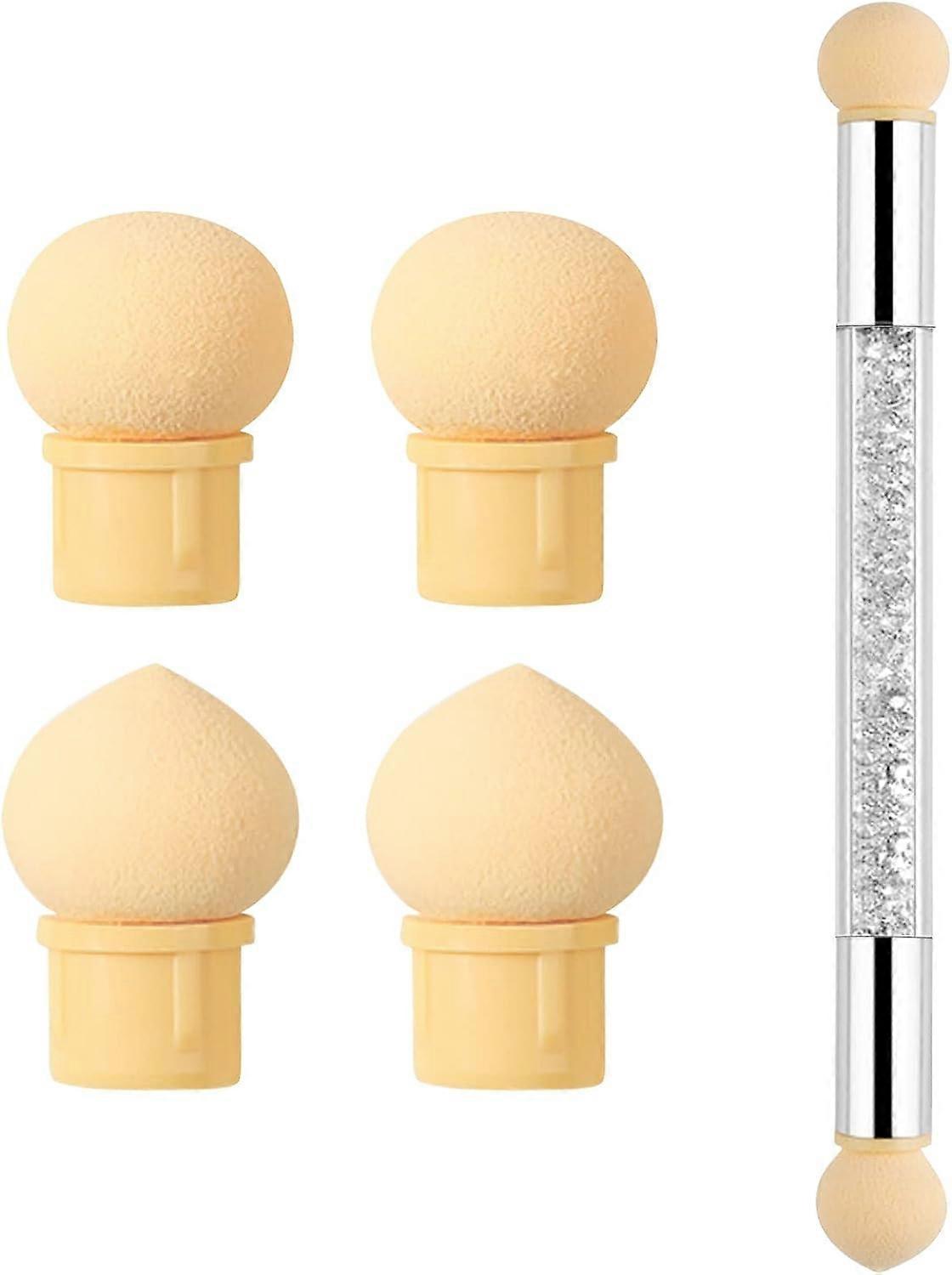 Nail Sponges, Sponge Nail Art Brush, Double Headed Nail Sponge with 4 Replacement Heads, for Gradient Nail Design
