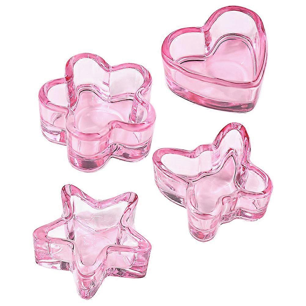 Nail Soak Bowl Pink Heart Shaped Glass Nail Dappen Dish Cups Manicure Accessories Storage for Nail Tools 4Pcs