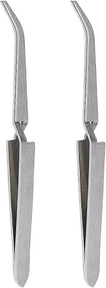 Bent nail art tweezers for nail decoration beads gemstone picking eyelash makeup tool (silver) (2pcs)