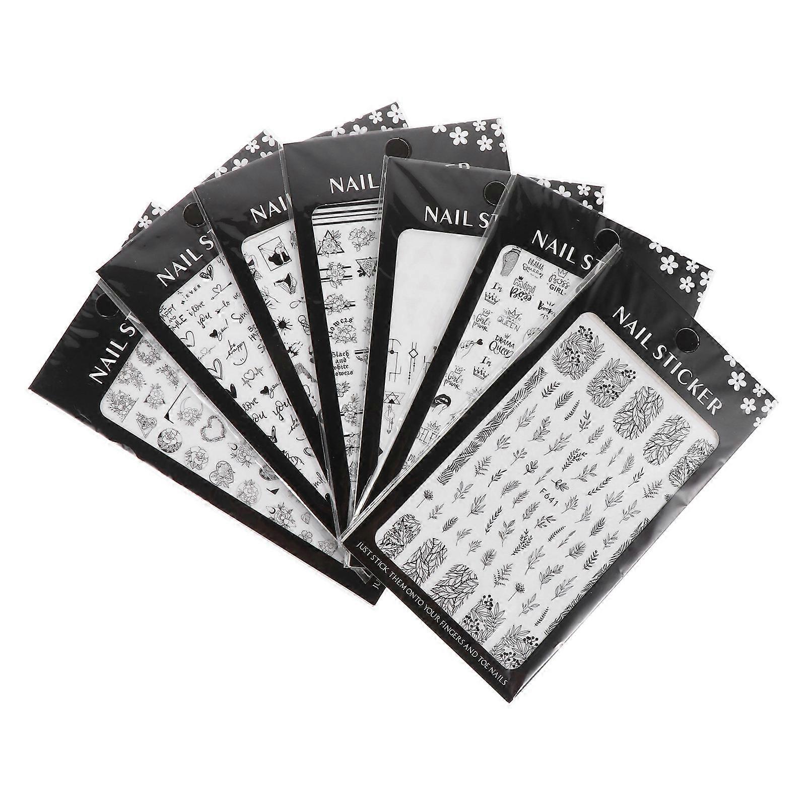 Nail Flower Decals Creative Design Daily Decoration For Nails Black 7Pcs