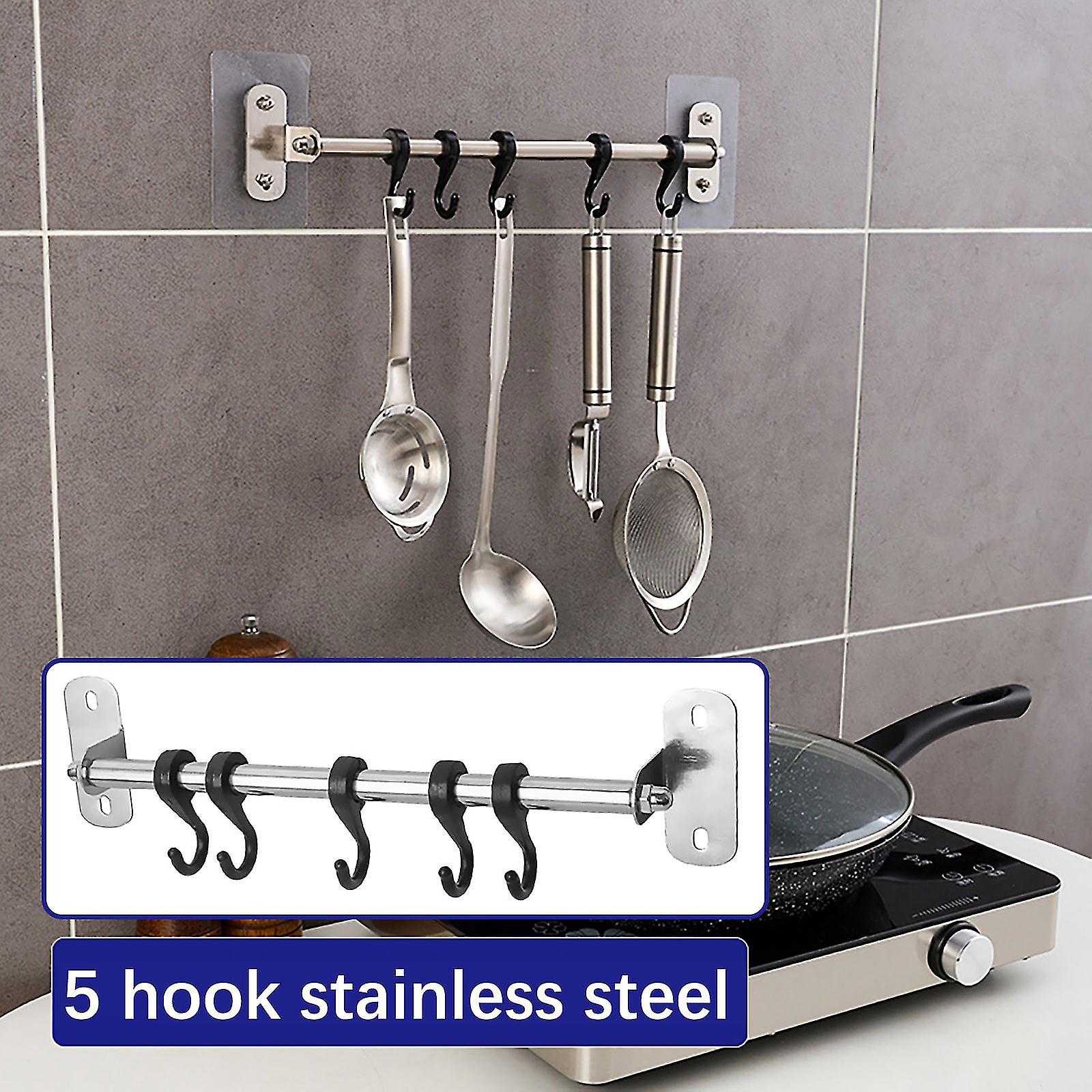 Nail-free Seamless Stainless Steel Kitchen Bath Hook Towel Rack Shelf