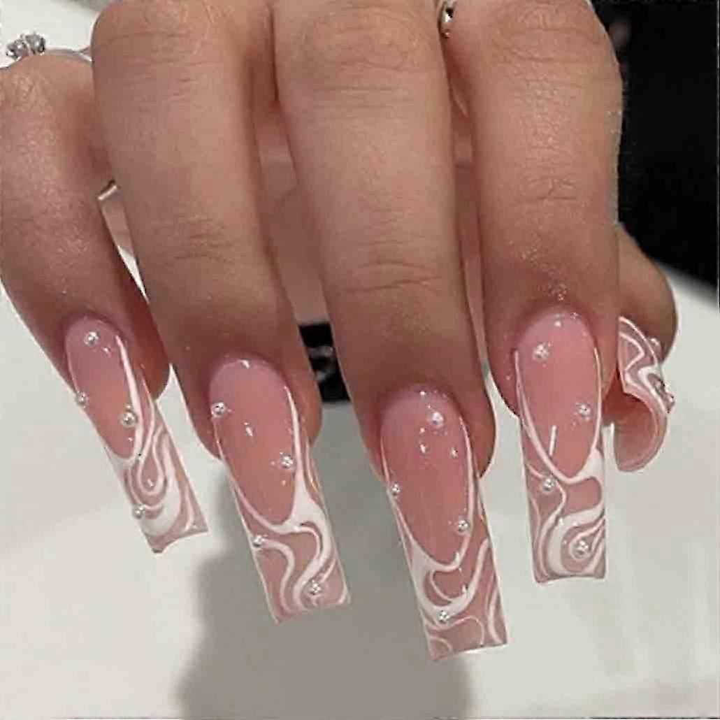 Square Press On Nails Long, Pearl Pink Fake Nails Acrylic False Nails,artificial Nails For Women And Girls 24 Pcs