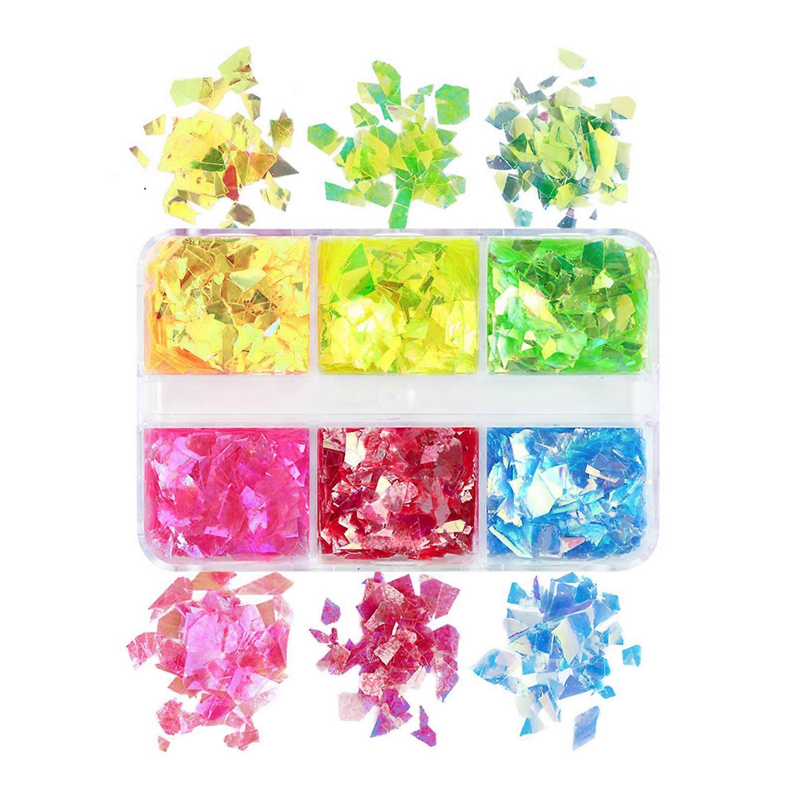 Nail Embellishments Nail Sequins Colorful Nail Glitter Mixed Size Nail Art Sticker for Nail Decors 6-Grid/Box