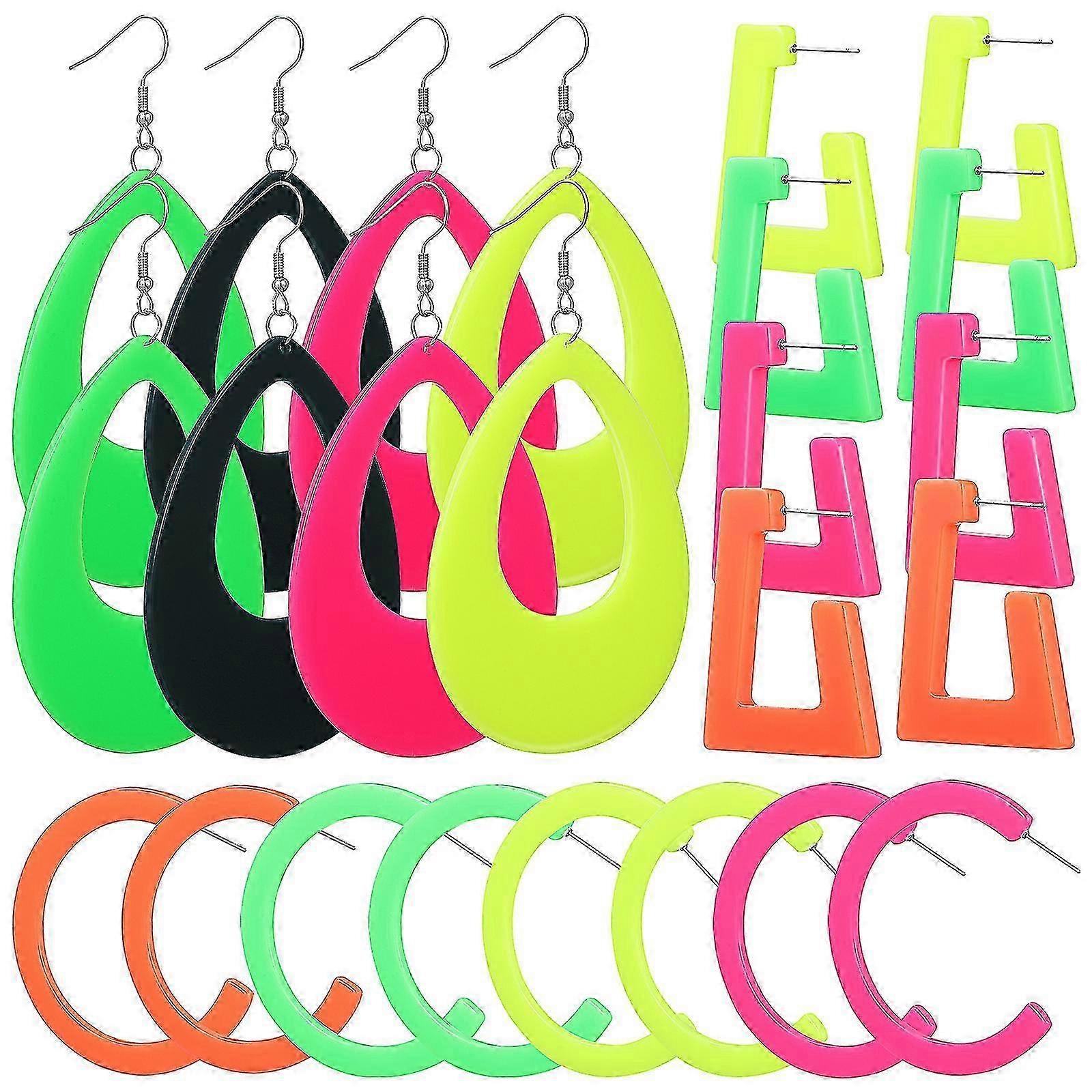 12 Pairs of Neon Earrings Water Drop Dangle Earrings with Geometric Shape Earrings Studs Exaggerated Ear Drops-FCY SZRH AC-