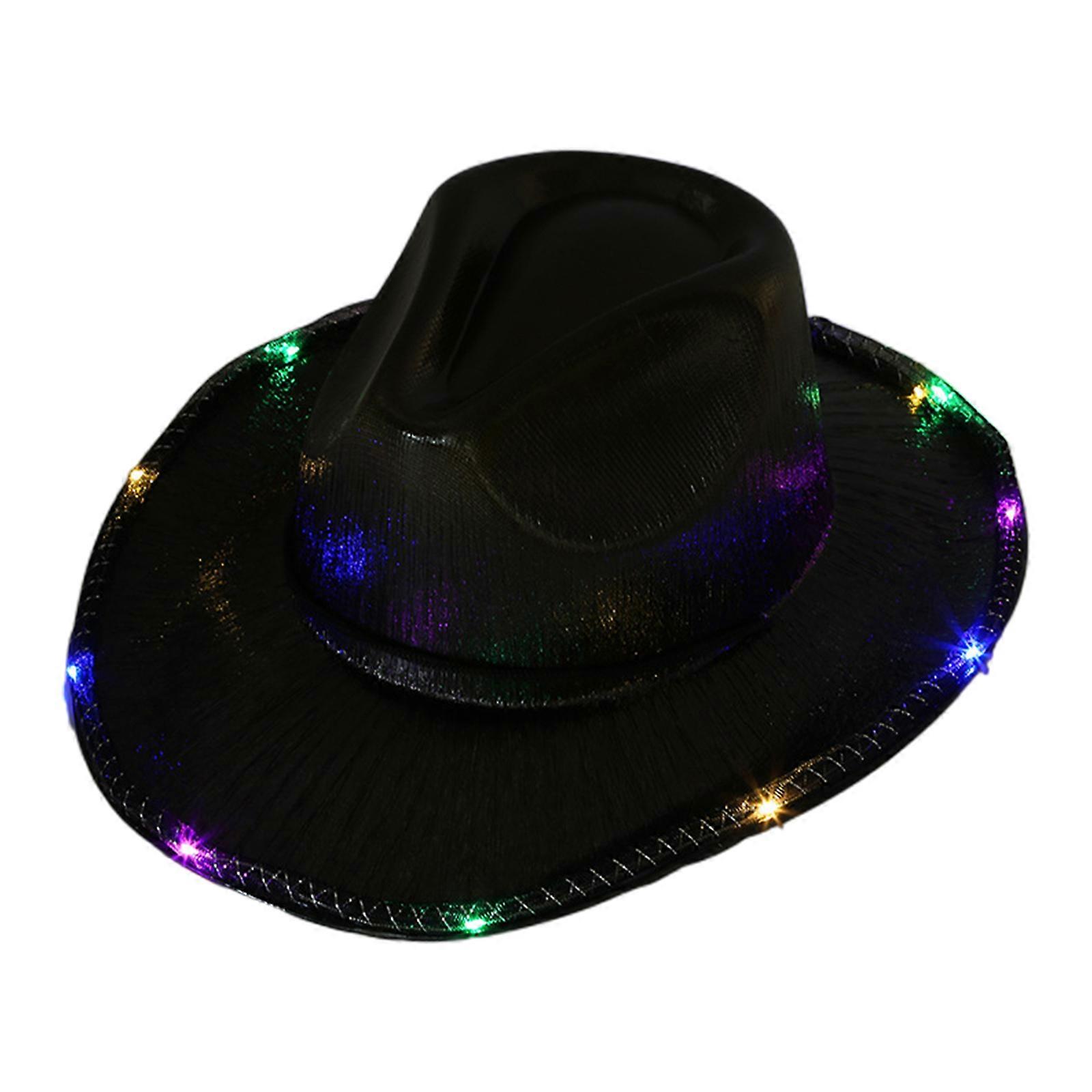 Neon Cowgirl Hat Ultra-flashing Cowboy Hat Glowing Fedora Hat for Music Festivals Sparkly Glowing Cowboy Hat All-match Black