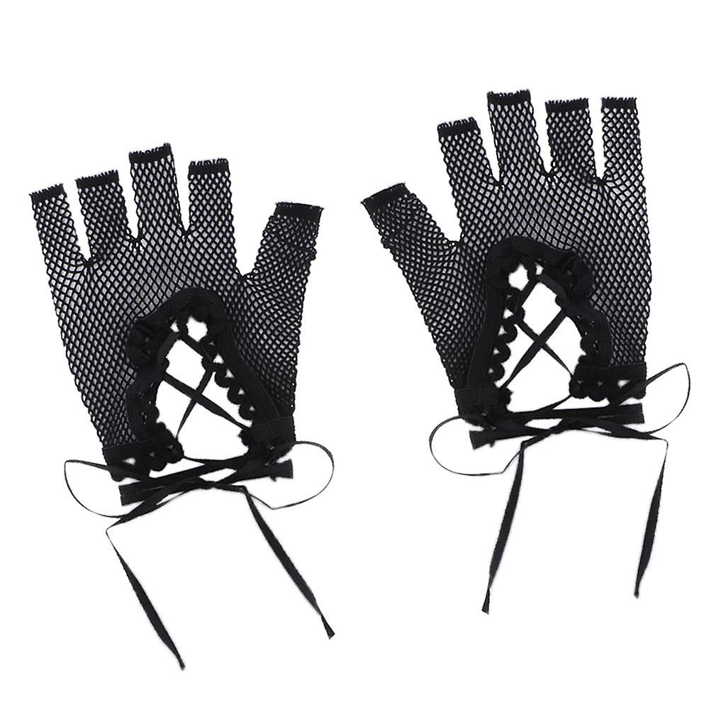 Neon Fishnet Half Finger Gloves Waist Lace up Gloves Fancy Party Wear Short