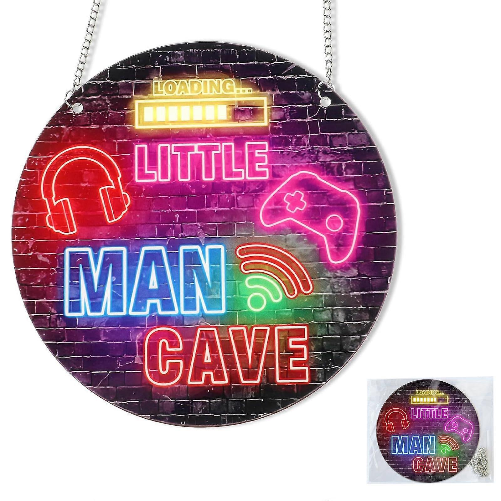 Neon Little Man Cave Gaming Sign, Wooden Door Mount, Contemporary Style, Multicolor, 12x6 inches