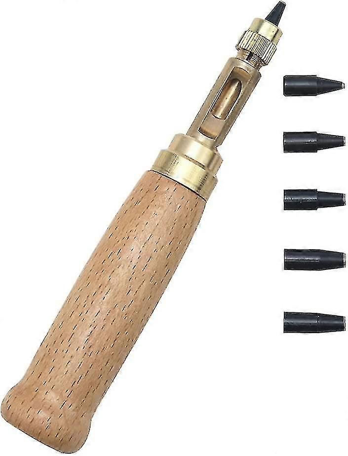 Screw Hole Punch Leather Tool Book Drill Craft Paper Punch Kit(2sets, Wood Color)
