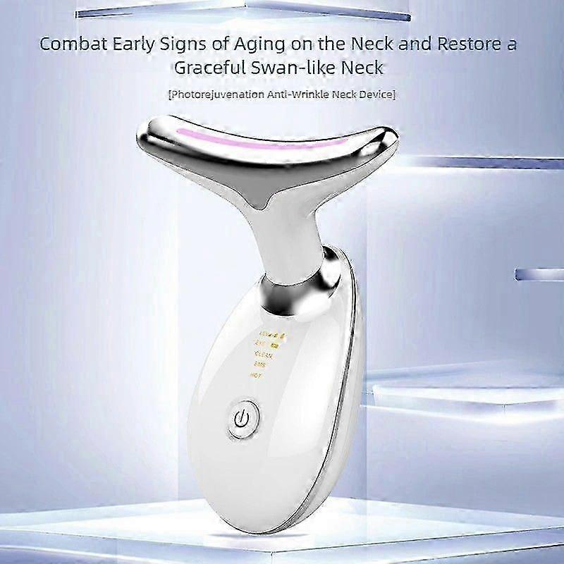 Combat early signs of aging and restore a graceful, swan-like neck with this Neck Firming & Anti-Wrinkle Device. Designed to target neck lines, sagging skin, and nasolabial folds, this device combines EMS microcurrent, LED light therapy, vibration massage, and heat function to firm, lift, and rejuvenate the neck area.The ergonomic Y-shaped head contours perfectly to the neck, jawline, and cheeks for a comfortable and effective massage. With simple one-button operation and USB charging, it's a convenient beauty tool for at-home or travel skincare routines.Color Options: White / BlackCharging Method: USB (built-in, non-removable battery)Battery Type: 602535Battery Specs: 3.7V / 500mAhPower Modes: CLEAN / EMS / HOT / LIFTFunctions:EMS microcurrent skin tighteningGentle vibration massageHeat therapy for circulationLED light modes for anti-aging and brighteningWhats in the box:1 x Neck Firming Massager1 x USB Charging Cable1 x User ManualBest For:Neck and jawline tightening, reducing fine lines and wrinkles, firming sagging skin, lifting facial contours, and daily anti-aging skincare.Key Features (Bullet Points):Multi-mode neck care: EMS, LED, heat, vibrationY-shaped head fits neck & jawline comfortablyUSB rechargeable with 500mAh built-in batteryLightweight, cordless, and travel-friendlyOne-touch operation with indicator lightsAvailable in White or Black