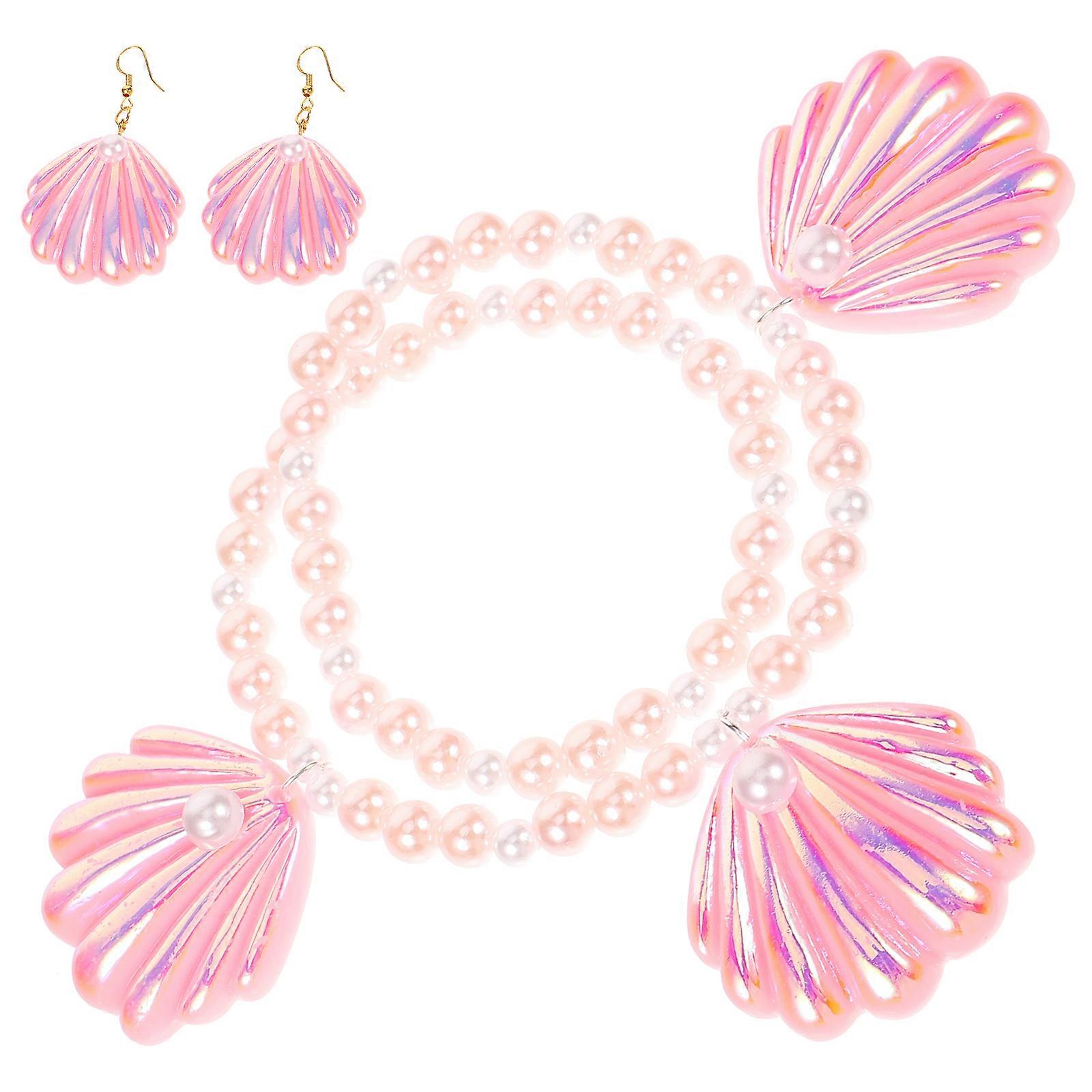 Necklace Earrings Set Plastic Resin Metal Material Shell Shape Decoration for Girls Weddings Dinner Party 1Set
