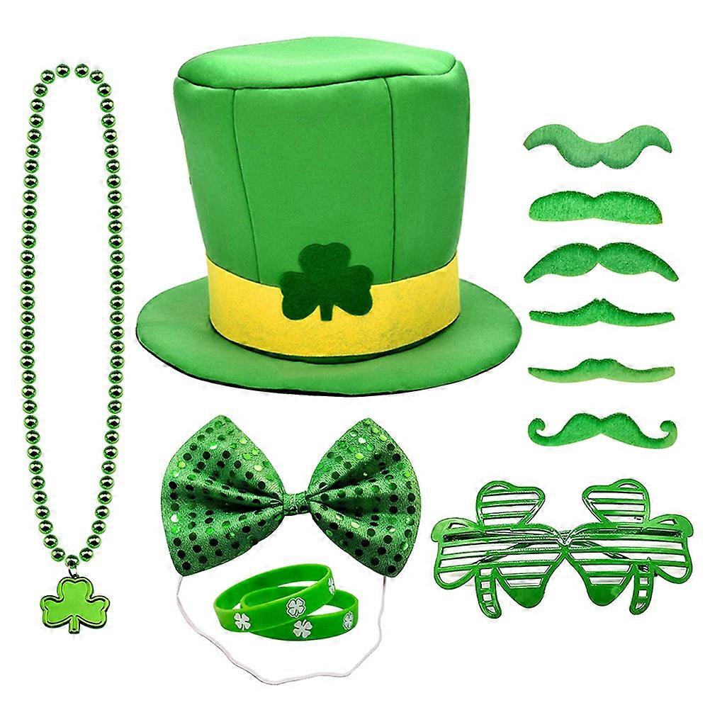 Green Fabric Party Decor Set with Necklace Glasses and Shamrock Wristband for St Patrick Day Photo Props and Decoration 1 Set