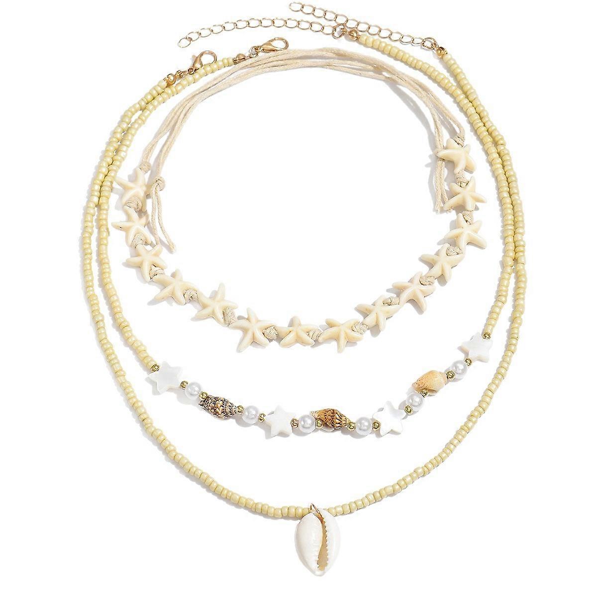 Necklace Set, Ocean Vacation Style with Starfish Conch Shell Rice Beads Pearls