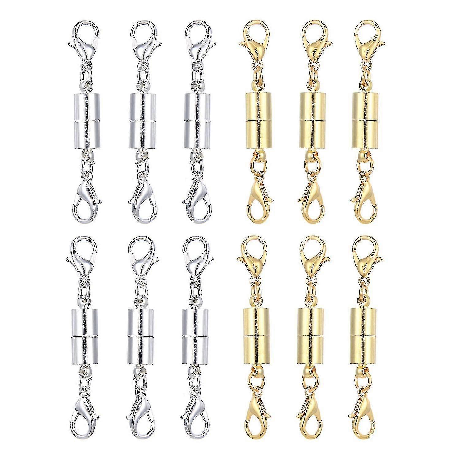 12 Pack Magnetic Clasp Converter Double Lobster Magnetic Jewelry Clasps For Necklace Bracelet Clasps, 6 Gold + 6 Silver 6mm