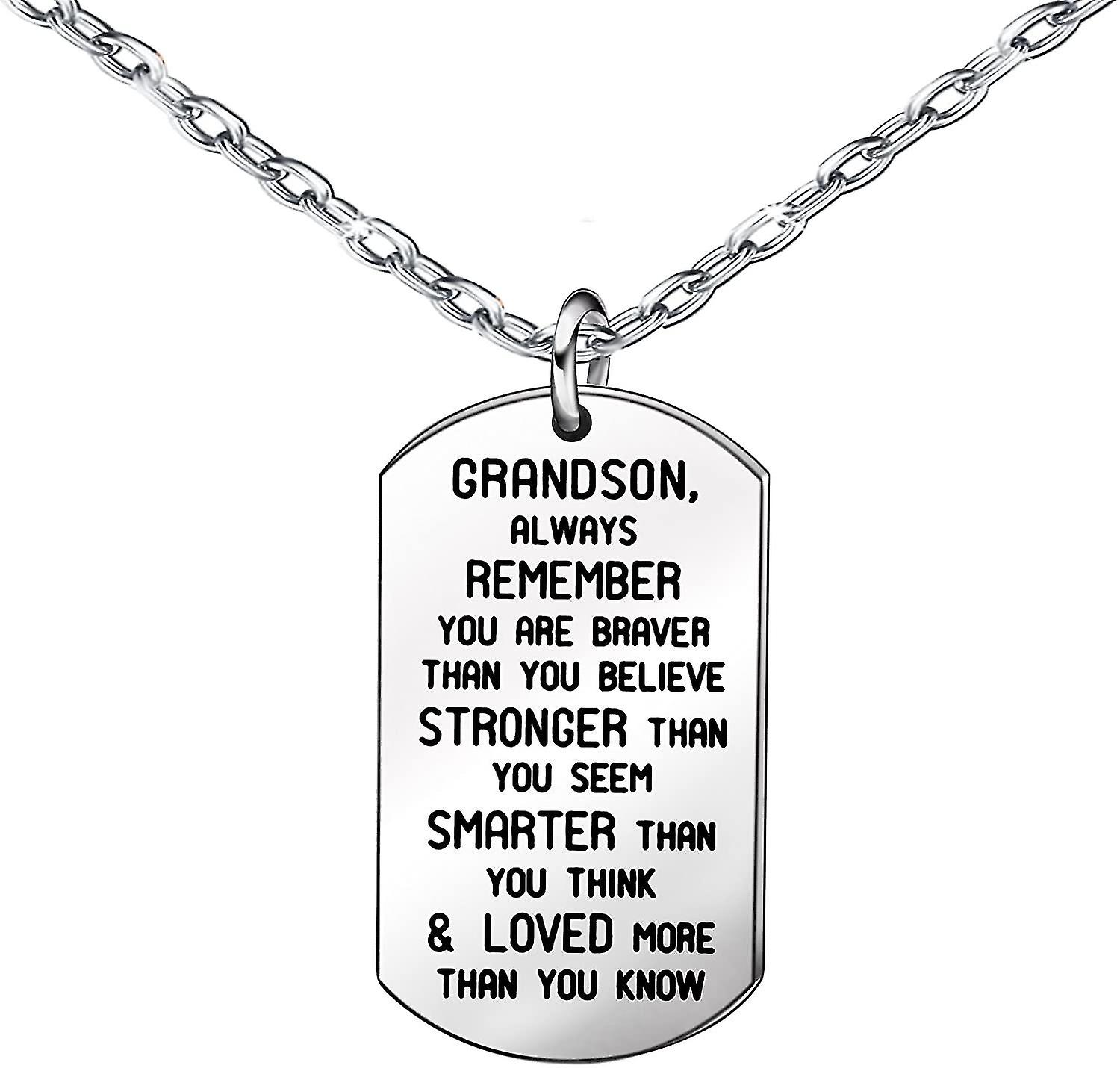 Necklaces Grandson Gifts Stainless Steel Silver Tone Dog Tag Charms For Men Boys