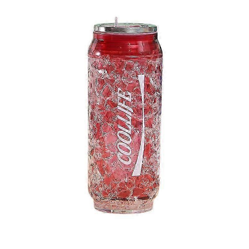 Net Red Creative Cola Can Water Cup Double-layer Plastic Straw Cup Student Portable Crushed Ice Cup Soda Cup Sports Water Bottle(red)
