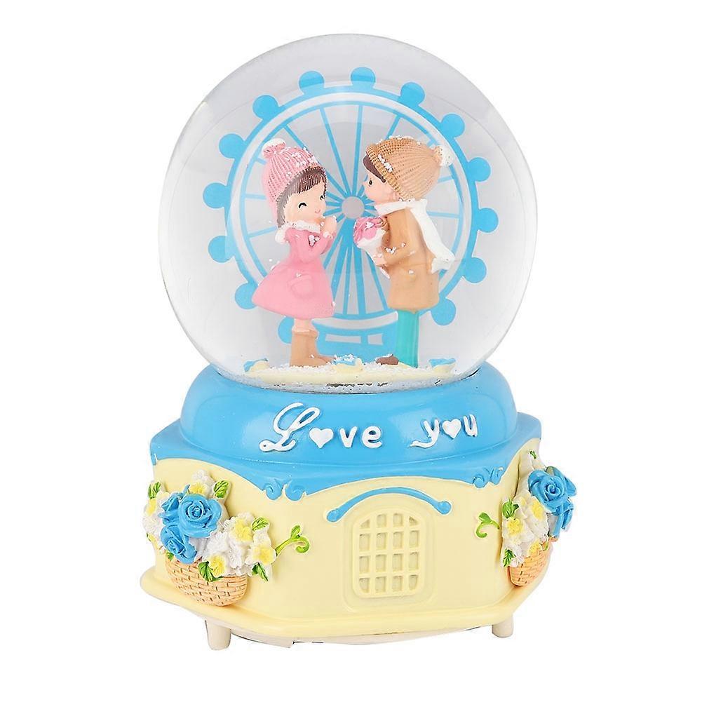 Novelty Night Light Musical Ferris Wheel Snow Globe Music Box Desktop Ornament(Blue)