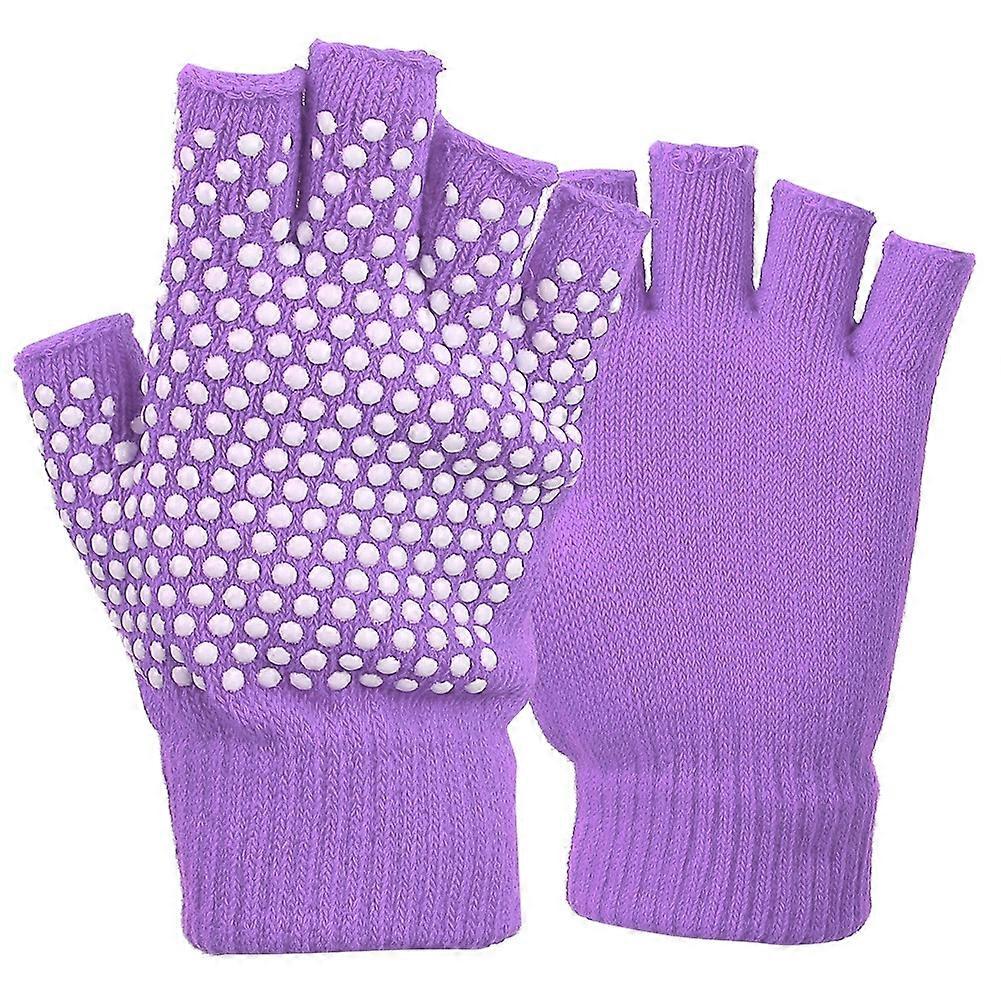 Non Slip Yoga Half Finger Gloves Breathable Fitness Exercise Sports(purple)