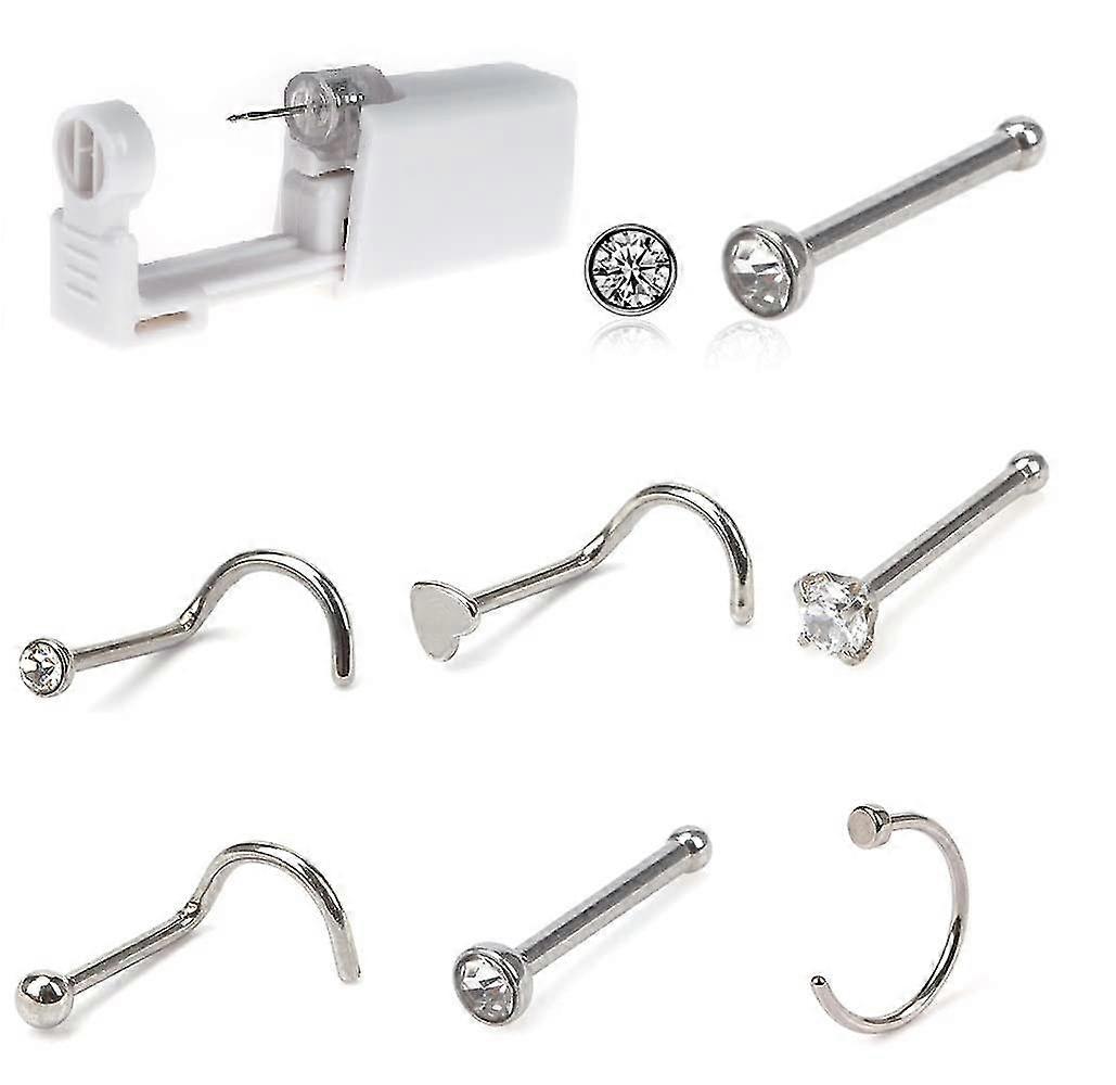 Nose Piercing Kit Disposable Sterile Safety Nose Piercing Gun Tools With 6 Pcs Nose Studs For Women Man Girls Boys Unisex